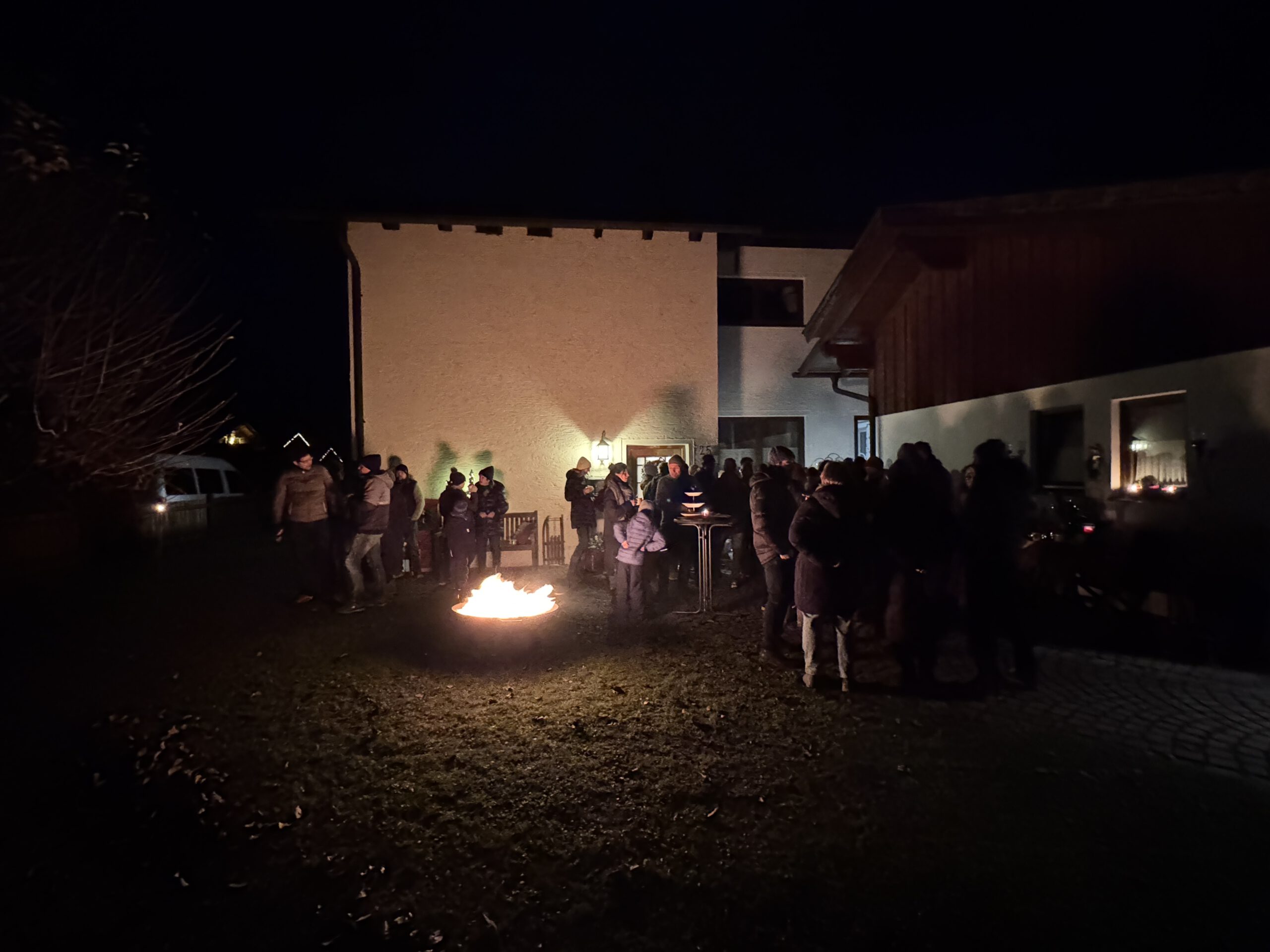 Am Maibaum leuchtet die erste Kerze am großen, von den Trachtenfrauen selbstgebundenen, Adventskranz und bei Marianne und Rudi Jauernig fanden sich viele Adventsfreunde zum gemeinsamen Abend ein. Rund um die Feuerschale wurde erzählt, gelacht und natürlich, wie immer in der Mühlenstraße, „Es weard scho glei dumpa“ gesungen. Mit einem kleinen Text zum Warten und Zeit nehmen ließen uns Marianne und Rudi innehalten. Wie schön, dass rund um d´Feldwies im Advent verlässliche Momente der Ruhe in der Hektik der Vorweihnachtszeit schenkt und wir so herzlich eingeladen und empfangen werden.