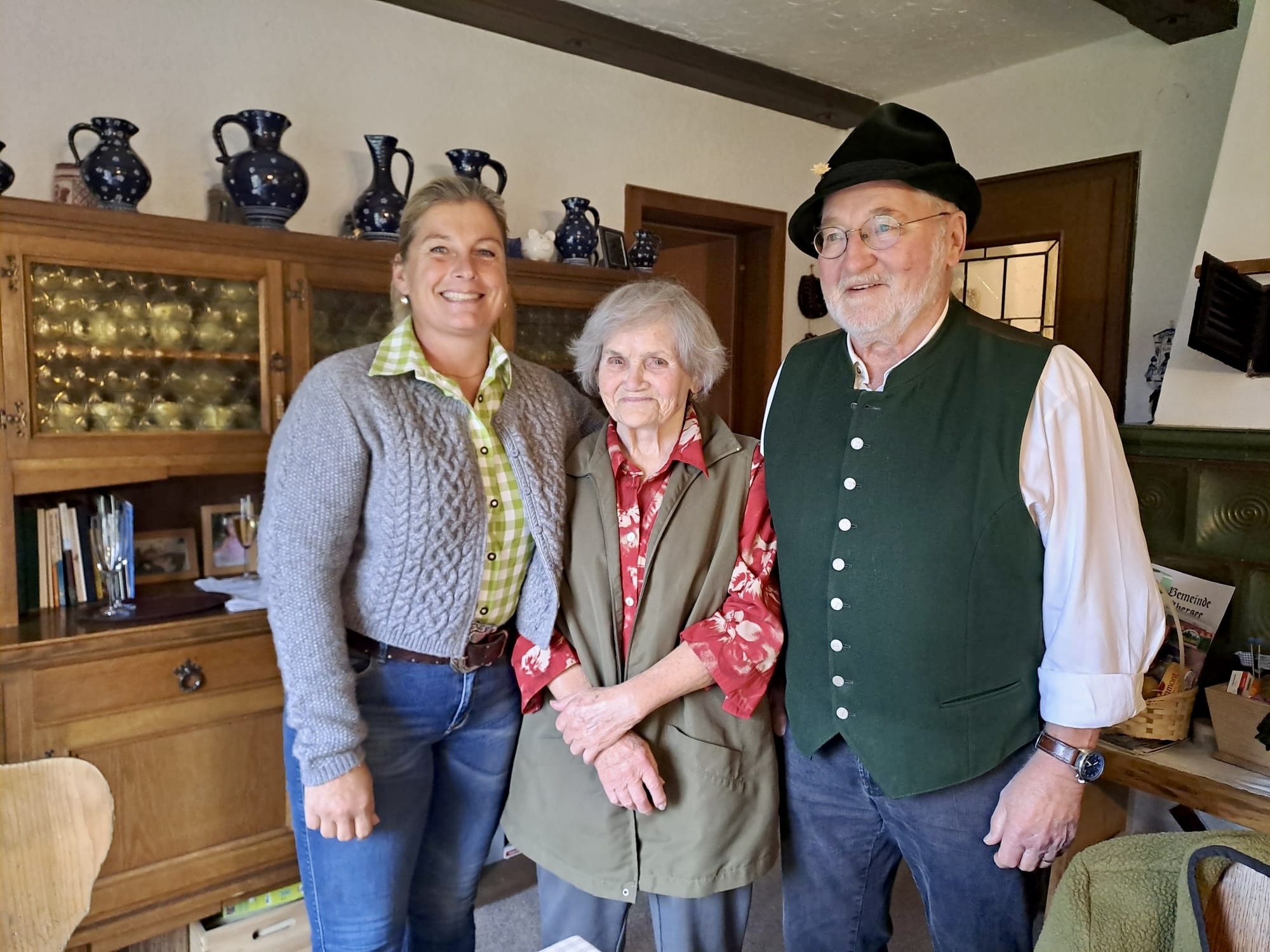 Zweite Röckifrauen Vertreterin Lisa Scheck und Ehrenvorstand Schorsch Schobersteiner gratulierten Ehrenmitglied Mathilde Gelder zum 90-er
