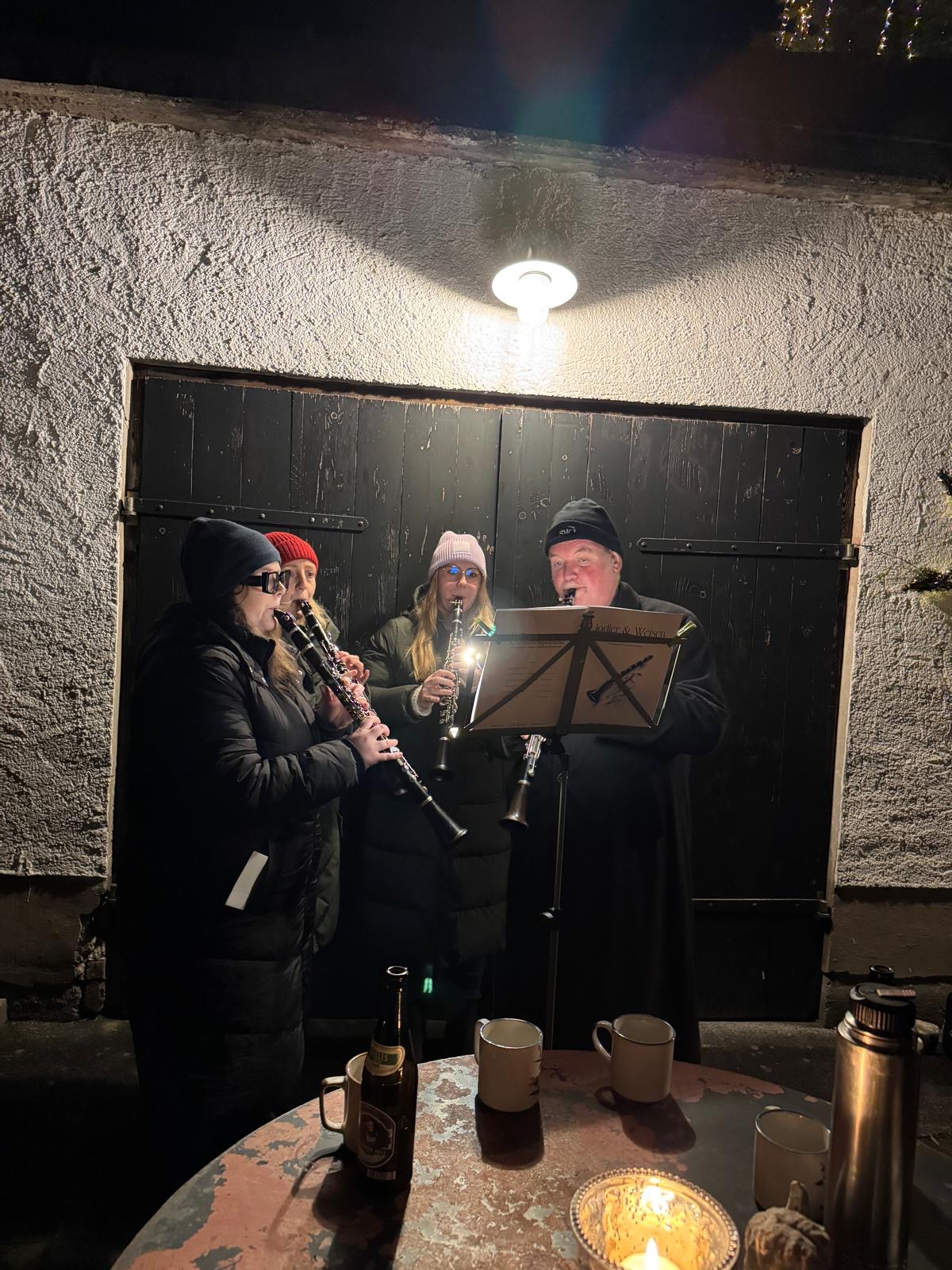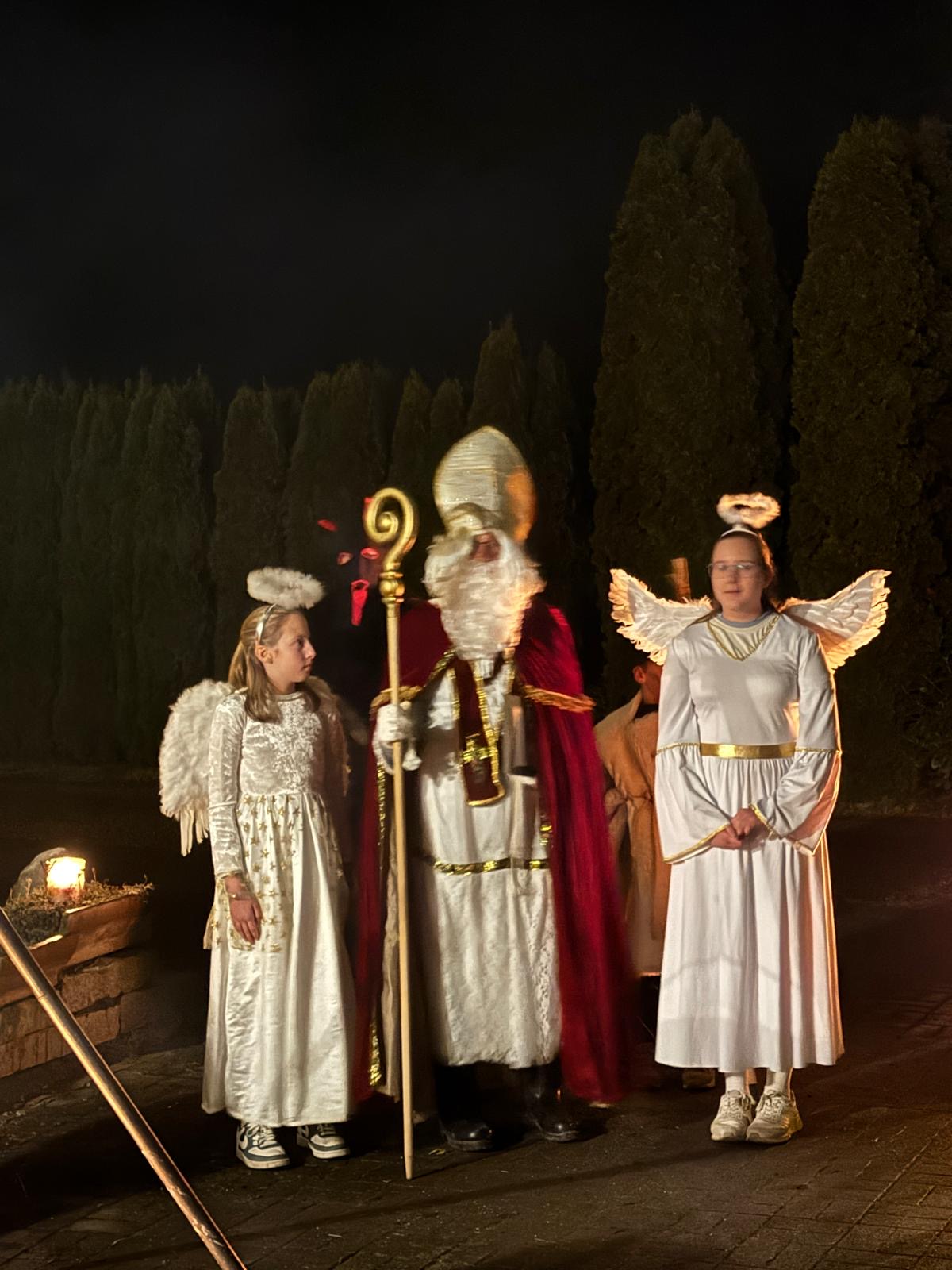Der Nikolaus schaute mit Engal und Kramperl vorbei und verteilte Geschenke, ein Engel las eine kurze Geschichte vor und das Klarinettenquartett umrahmte die Zeit musikalisch.