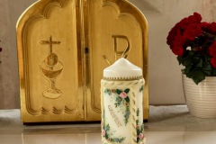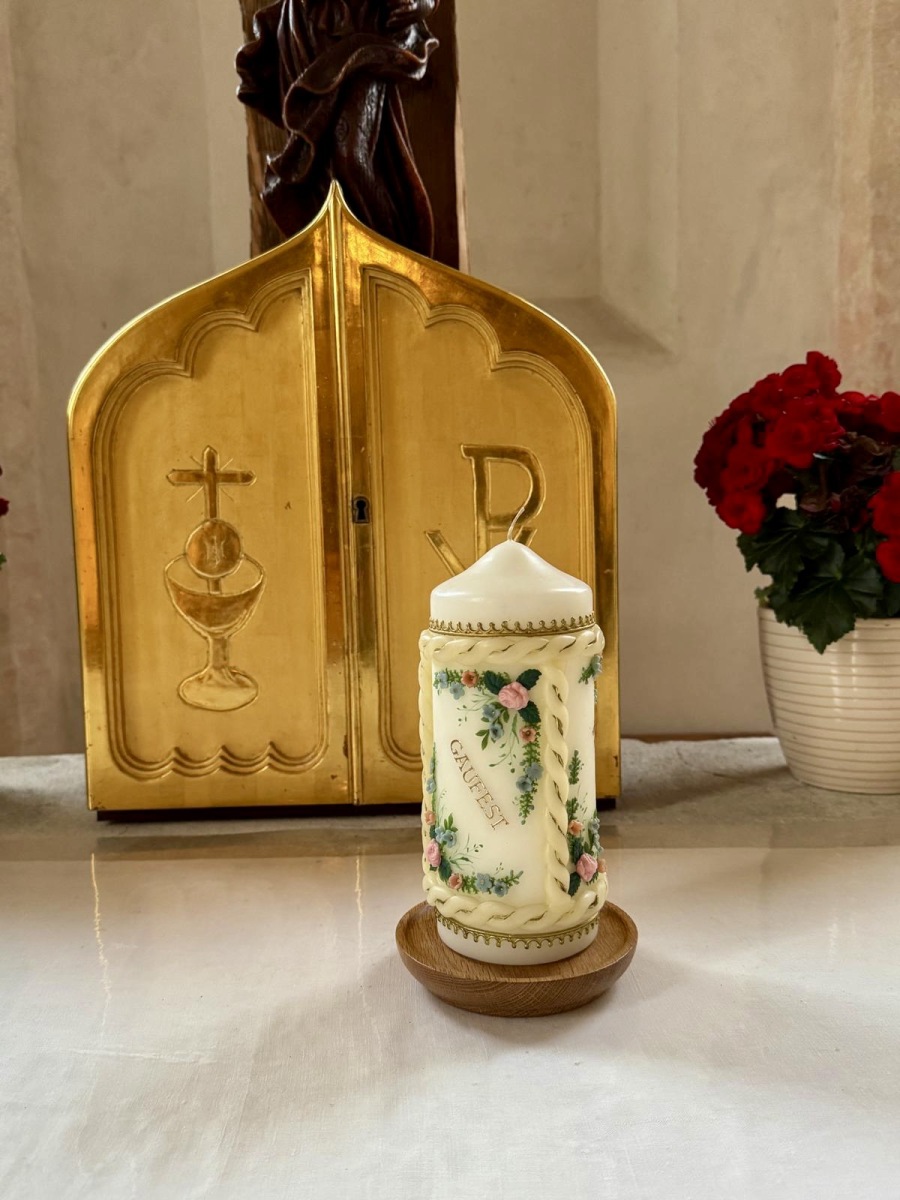 Die Gaufestkerze aus dem Hause Irger wurde gesegnet und wird am Gaufestsonntag auf dem Kirchenfestplatz bei Familie Egart und Schwögler zum ersten Mal angezündet werden.