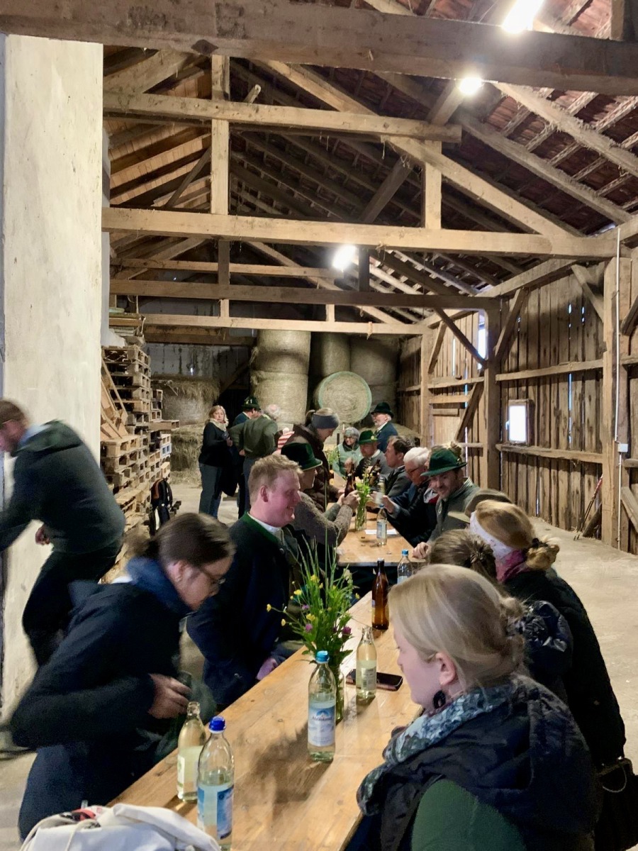 Bei der anschließenden Brotzeit bei Michaela und Hans in der Tenne klang der Bittgang aus und es wurden Ideen gesponnen, Geschichten erzählt und die Vorfreude auf a scheene Zeit mit guade Leid war deutlich spürbar.
