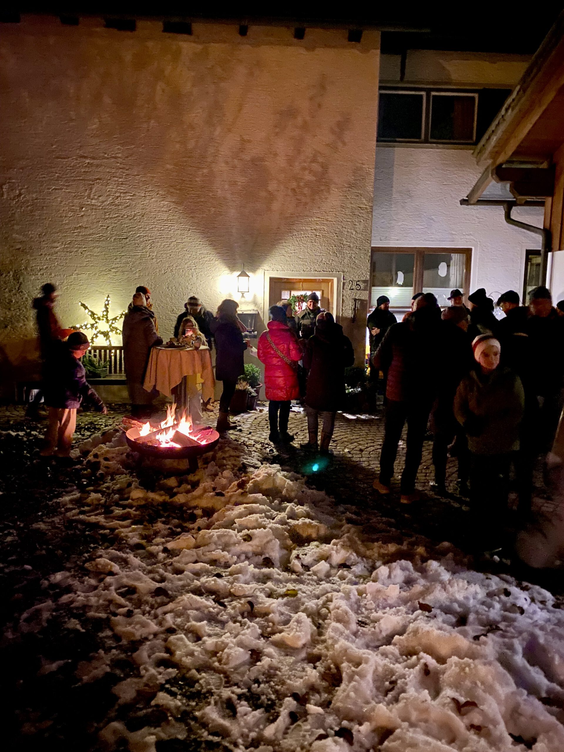 Am 2. Advent leuchtete der Stern bei Marianne und Rudi Jauernig in der Mühlenstraße. Was hatten die vielen Gäste nicht alles zu besprechen und erzählen nach dem schönen Unterlandler Christkindlmarkt am Tag zuvor! Am Feuer bei Glühwein und Plätzchen „half“ uns Rudi mit seiner Geschichte übers Weihnachtspapierl sehr bei den Vorbereitungen für das Weihnachtsfest in genau zwei Wochen – jeder wird jetzt dran denken und nachschauen, wo er das Weihnachtspapierl vom letzten Jahr aufbewahrt hat! Wir sangen gemeinsam zwei Strophen von Mariannes liebstem Weihnachtslied „Es weard scho glei dumpa“ und verabschiedeten uns adventlich gestimmt in den Sonntagabend – vielen Dank, dass wir bei euch sein durften.