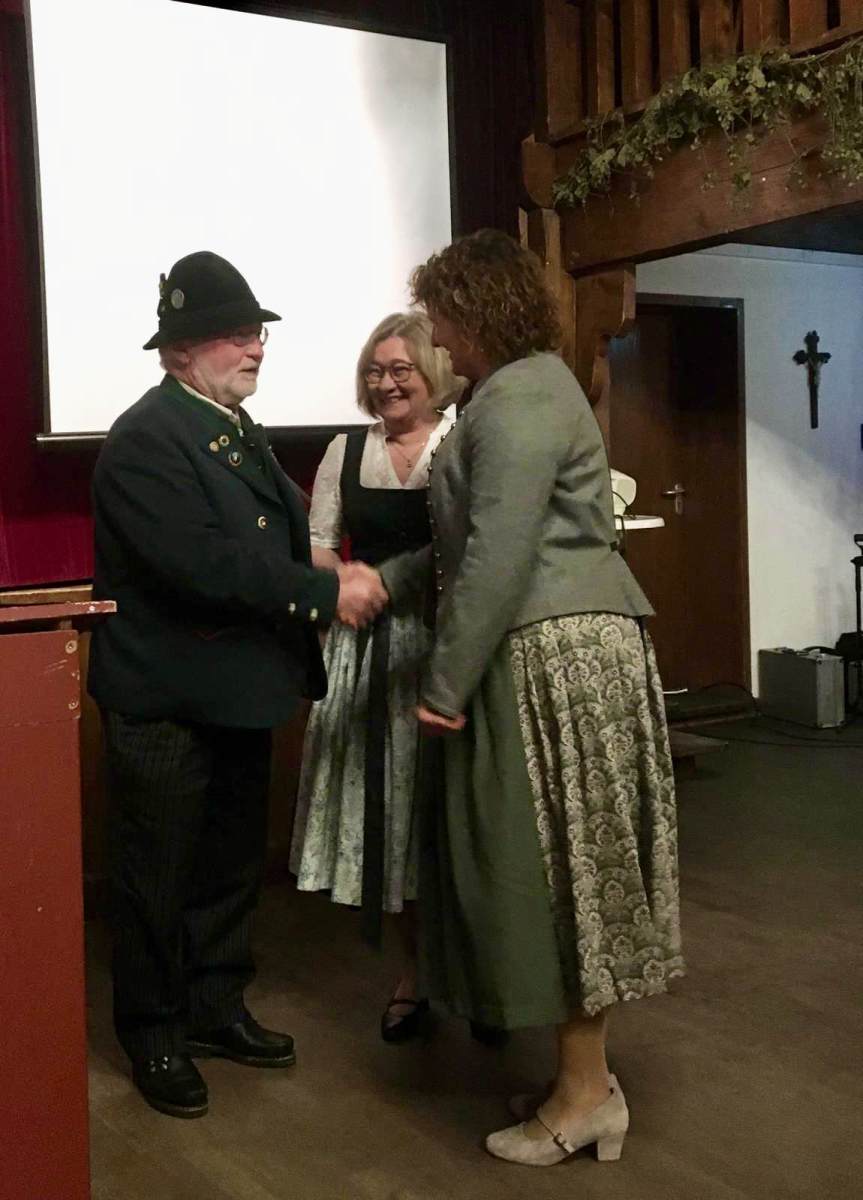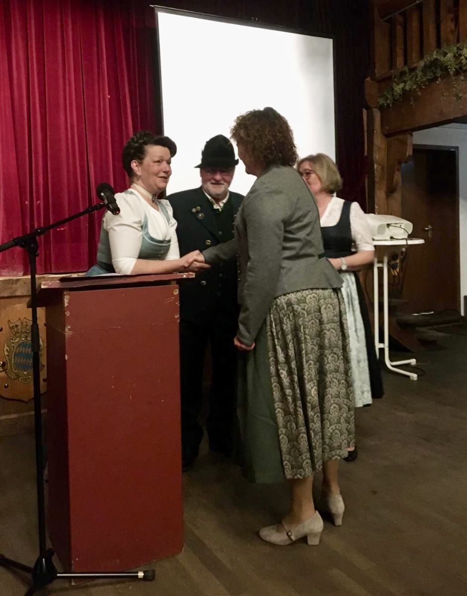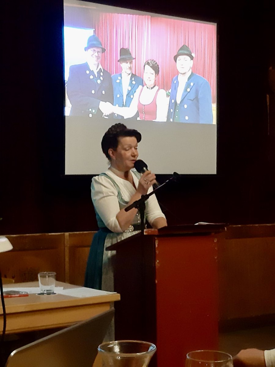 Unter TOP „Wünsche, Anträge und allgemeine Aussprache“ luden die Vorstände des Musikvereins Christian Kroner und Markus Genghammer (der auch der Festleiter für das Bezirksmusikfest 2025 ist) zu ihrem Fest ein und baten um Mithilfe und Zusammenarbeit für ein gutes Miteinander im Ort – Marianne Jauernig zeigte sich optimistisch „Wer, wenn nicht unsere beiden Vereine, schafft das?“ Alfred Thies aus Greffen, ein langjähriger Freund des Feldwieser Trachtenvereins, überbrachte mit seiner Einladung an die Aktiven zum Schützenfest in seine Heimatstadt auch Spenden Greffener Firmen zur Unterstützung der Fahrt an Pfingsten und überreichte sie Andreas Heigenhauser. Nach kurzweiligen 2 Stunden verabschiedete Vorstand Jauernig die 78 Anwesenden mit einem „Kemmt´s guad homa“ und dem Wahlspruch, der von den Vorfahren überliefert wurde: „Treu dem guten alten Brauch!“
