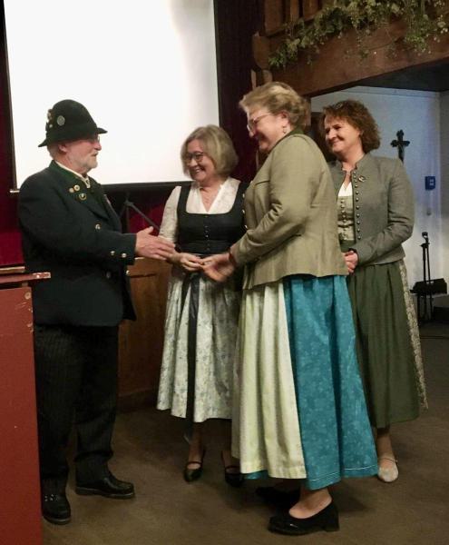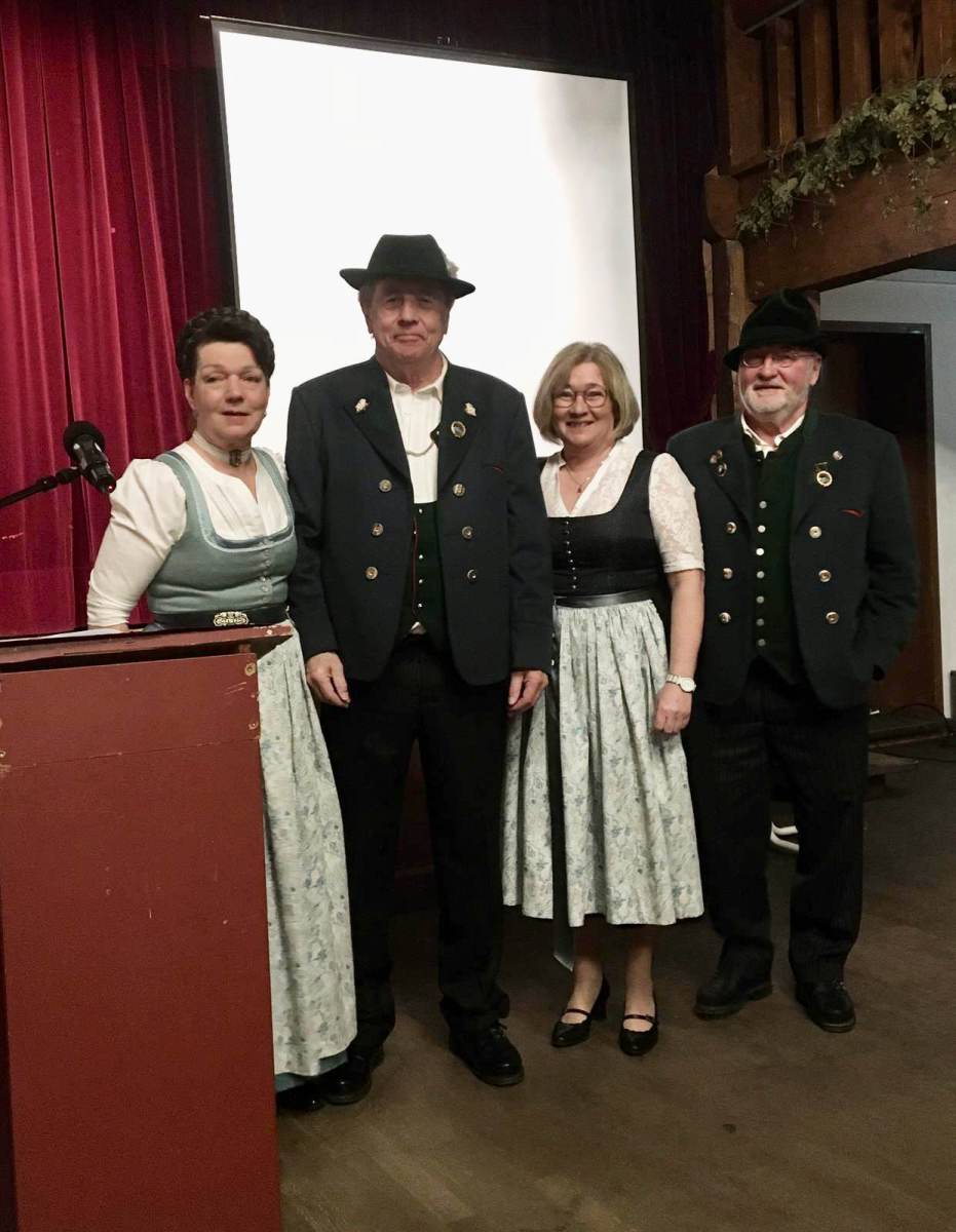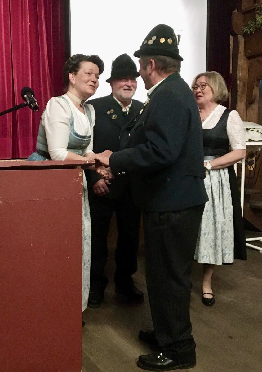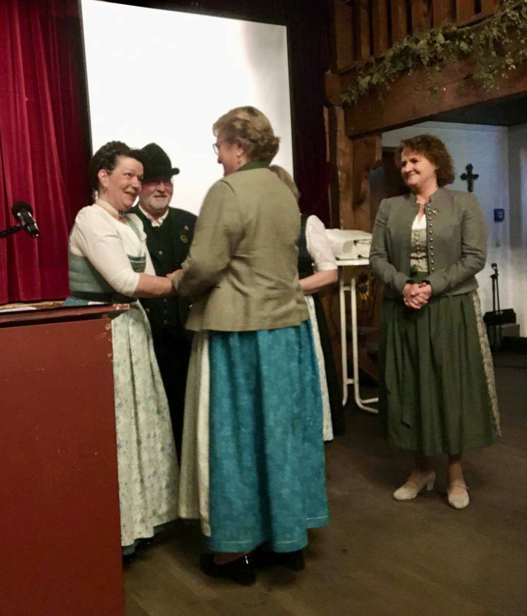 Unter TOP „Wünsche, Anträge und allgemeine Aussprache“ luden die Vorstände des Musikvereins Christian Kroner und Markus Genghammer (der auch der Festleiter für das Bezirksmusikfest 2025 ist) zu ihrem Fest ein und baten um Mithilfe und Zusammenarbeit für ein gutes Miteinander im Ort – Marianne Jauernig zeigte sich optimistisch „Wer, wenn nicht unsere beiden Vereine, schafft das?“ Alfred Thies aus Greffen, ein langjähriger Freund des Feldwieser Trachtenvereins, überbrachte mit seiner Einladung an die Aktiven zum Schützenfest in seine Heimatstadt auch Spenden Greffener Firmen zur Unterstützung der Fahrt an Pfingsten und überreichte sie Andreas Heigenhauser. Nach kurzweiligen 2 Stunden verabschiedete Vorstand Jauernig die 78 Anwesenden mit einem „Kemmt´s guad homa“ und dem Wahlspruch, der von den Vorfahren überliefert wurde: „Treu dem guten alten Brauch!“