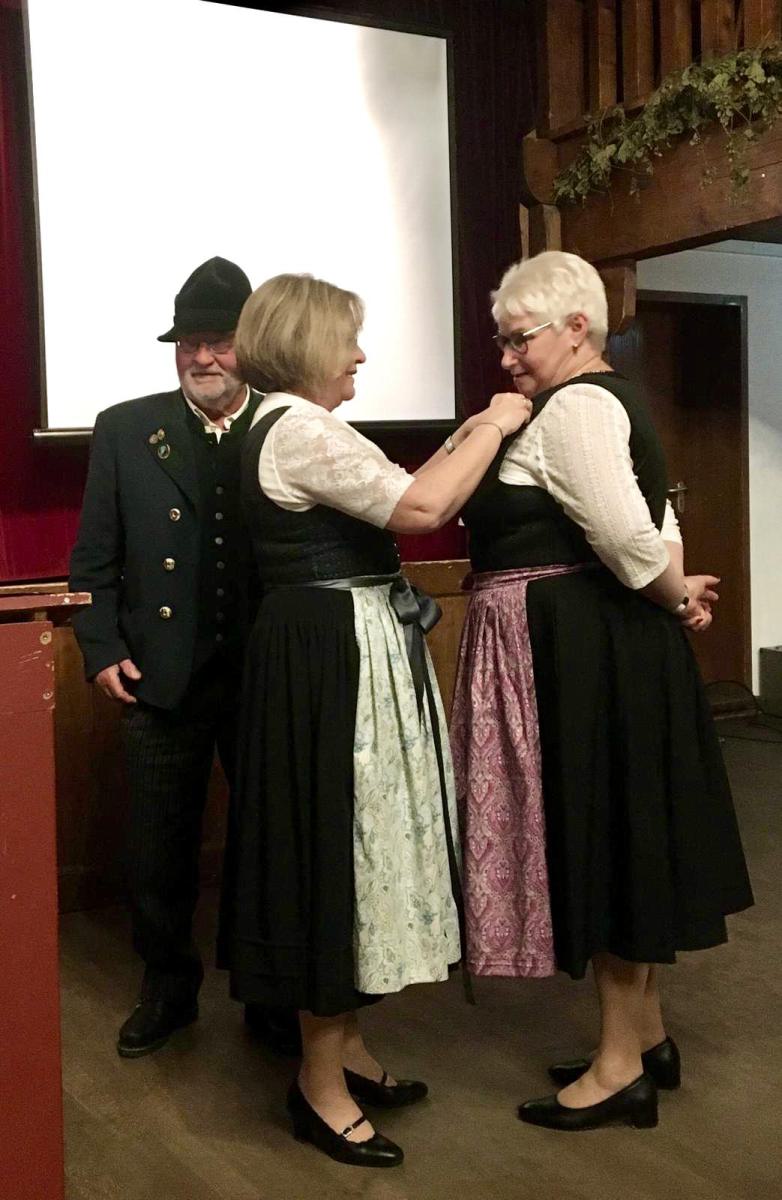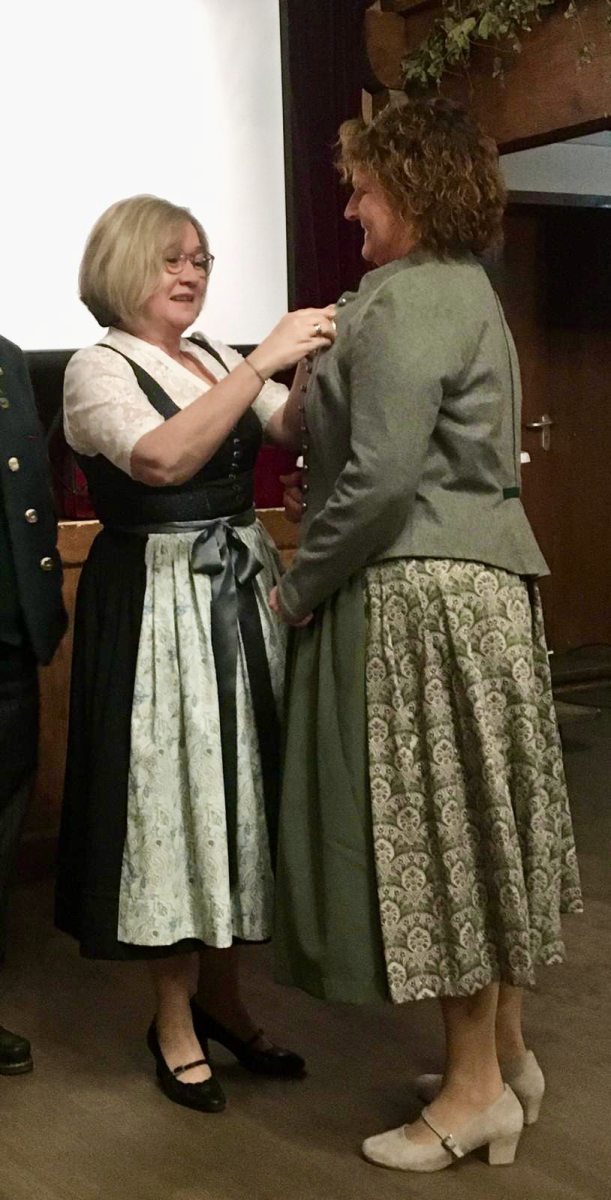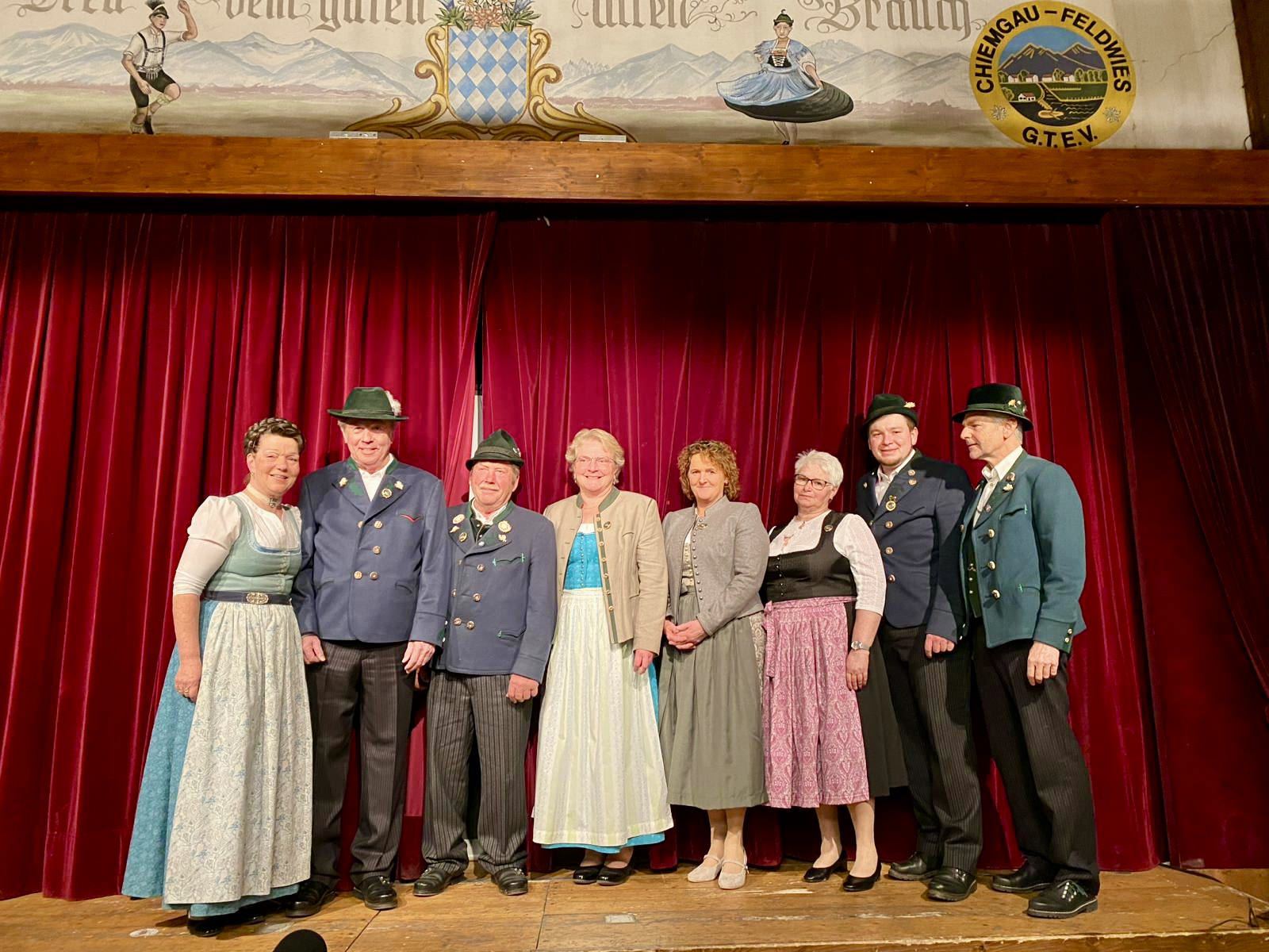 Die Entlastung der Vorstandschaft für das Jahr 2023, welche einstimmig erteilt wurde von der Versammlung, wurde von Wolfgang Hofmann beantragt, der die Kassenprüfung durchgeführt hatte und alles ohne Beanstandung vorfand. Weitere Abstimmungen fanden zu einer Satzungsänderung und einer Erhöhung des Mitgliedsbeitrages statt. Auch diese wurden einstimmig, wie vorgeschlagen, angenommen. Marianne Jauernig blickte in ihrem Bericht auf das letzte Vereinsjahr zurück und legte ihren Schwerpunkt dabei auf das vergangene Gaufest in Reit im Winkl – immer auch im Hinterkopf habend, dass das große Fest nächstes Jahr in der Feldwies stattfinden darf. Bevor sie gemeinsam mit Michaela Stein die bisherigen Ergebnisse zu den Planungen für das Gaufest daheim präsentierte, bat sie um Bestätigung der Festausschussmitglieder durch die anwesenden Vereinsmitglieder. Auch hier zeigte sich der Vertrauensbeweis – einstimmig und ohne Gegenstimme oder Enthaltung erhielten die 9 den Rückhalt der Feldwieser Trachtler. Jauernig und Stein stellten auch das Logo vor, mit dem der Trachtenverein Richtung Juli 2025 steuern wird und freuen sich schon heute auf „A scheene Zeit mit guade Leid!“. Bürgermeister Strauch versprach in seinem Grußwort weiterhin die Unterstützung der Gemeinde für den Verein, auch hier v.a. für das bevorstehende Fest. Als Schirmherr freue er sich auf die weiter anpackende Präsenz des Vereins im Ort.
