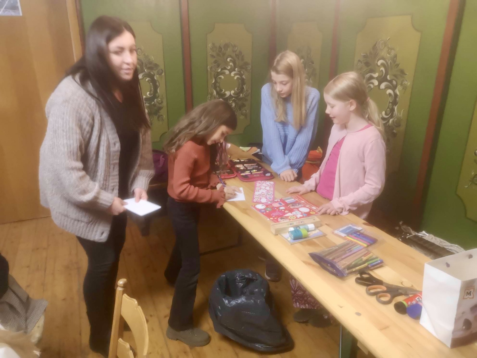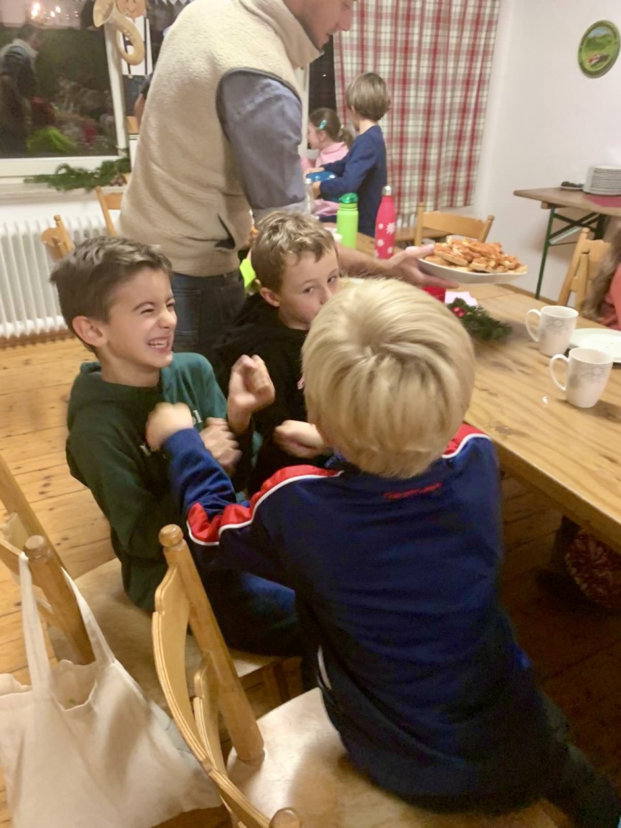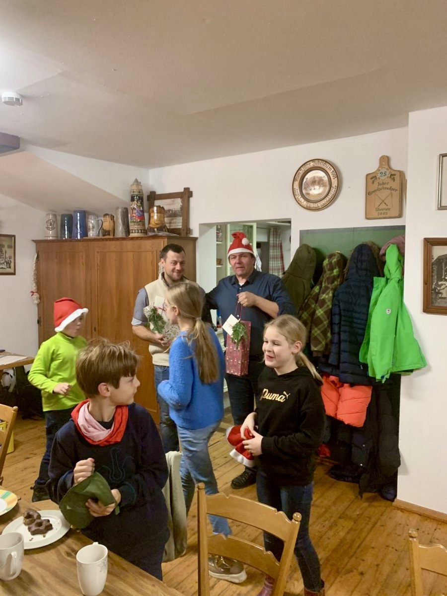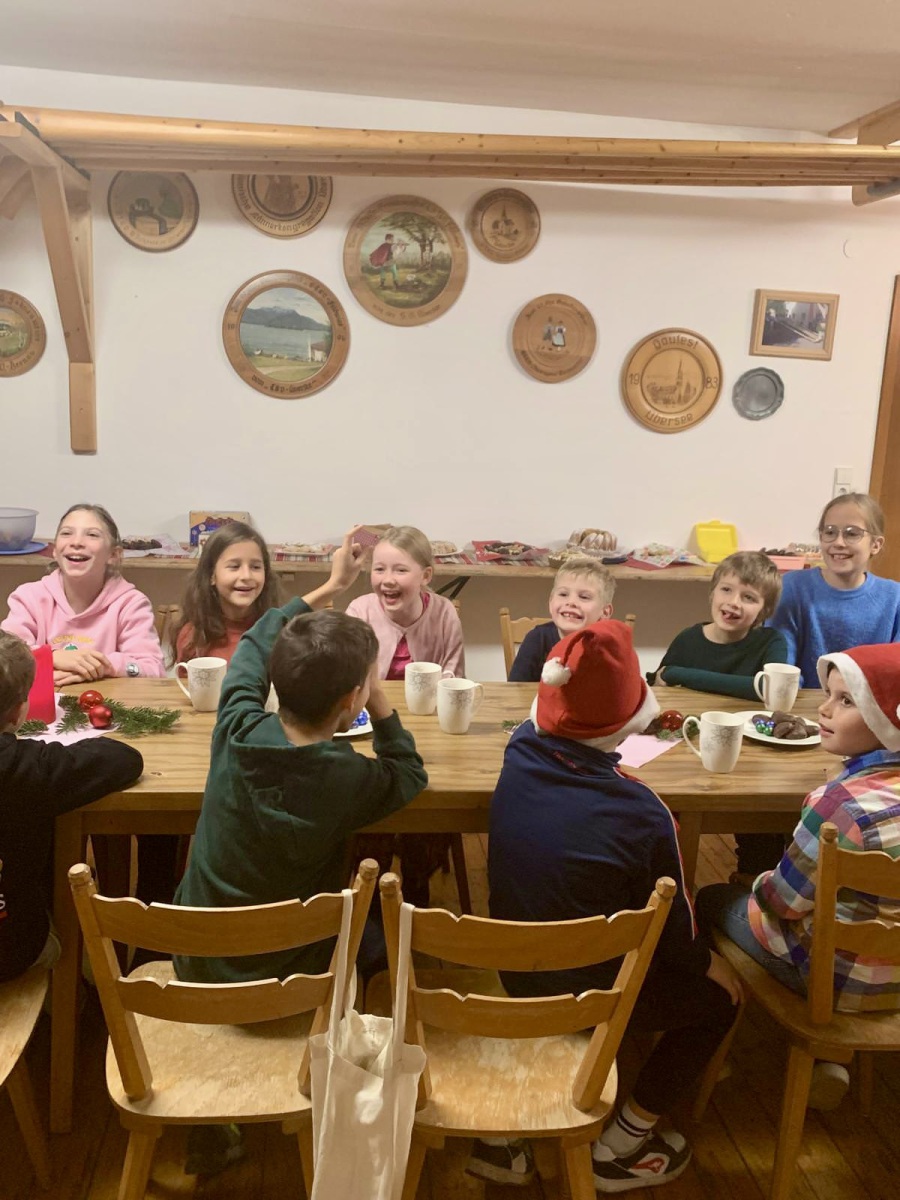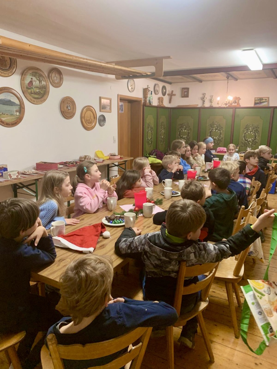 Neben köstlichsten Plätzchen, Punsch und einer kleinen warmen Brotzeit wurde gesungen und viele Weihnachtskarten für Pfarrer, Polizei, Bürgermeister, … und sogar in unsere Partnerstadt Monte San Biagio geschrieben und selbst bemalt.