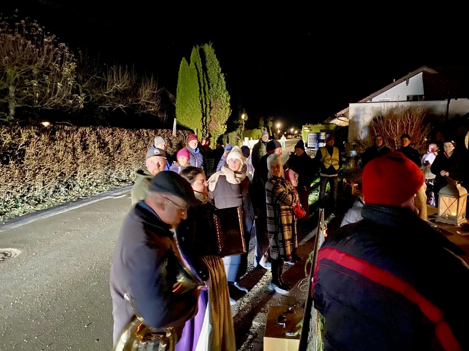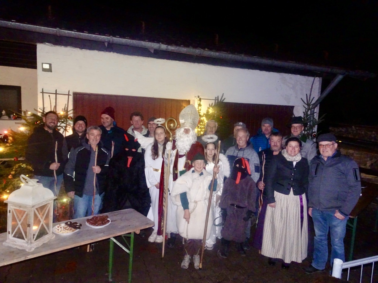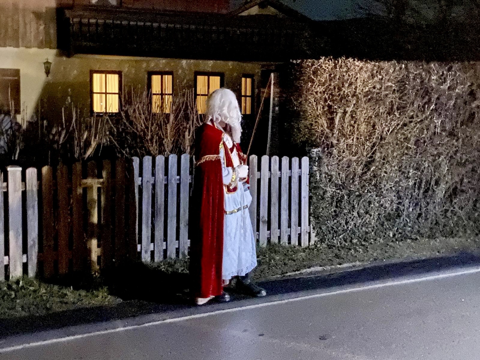 Bei Familie Albert Schupfner standen die Schnalzer Spalier und empfingen den Nikolaus, seine Engel und den Kramperl. Mit Regina an der Ziach zeigten die Schnalzer stolz auf und knallten in den klaren Winterabend.