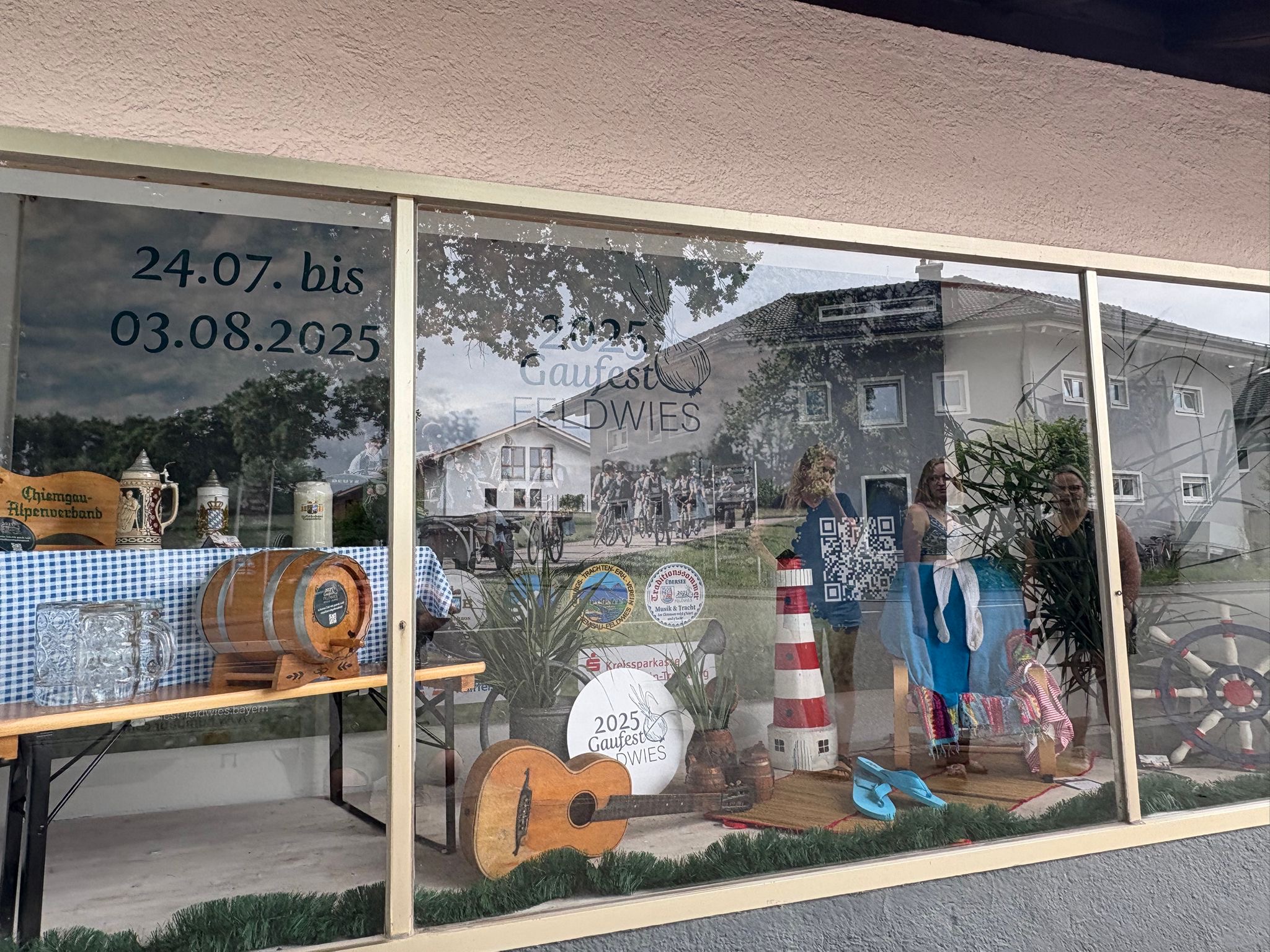 Vielen Dank an Christina, Feli, Uli und Martina (Nicht auf den Foto, hat fotografiert) für die neue Gestaltung des Schaufensters in der Feldwies!