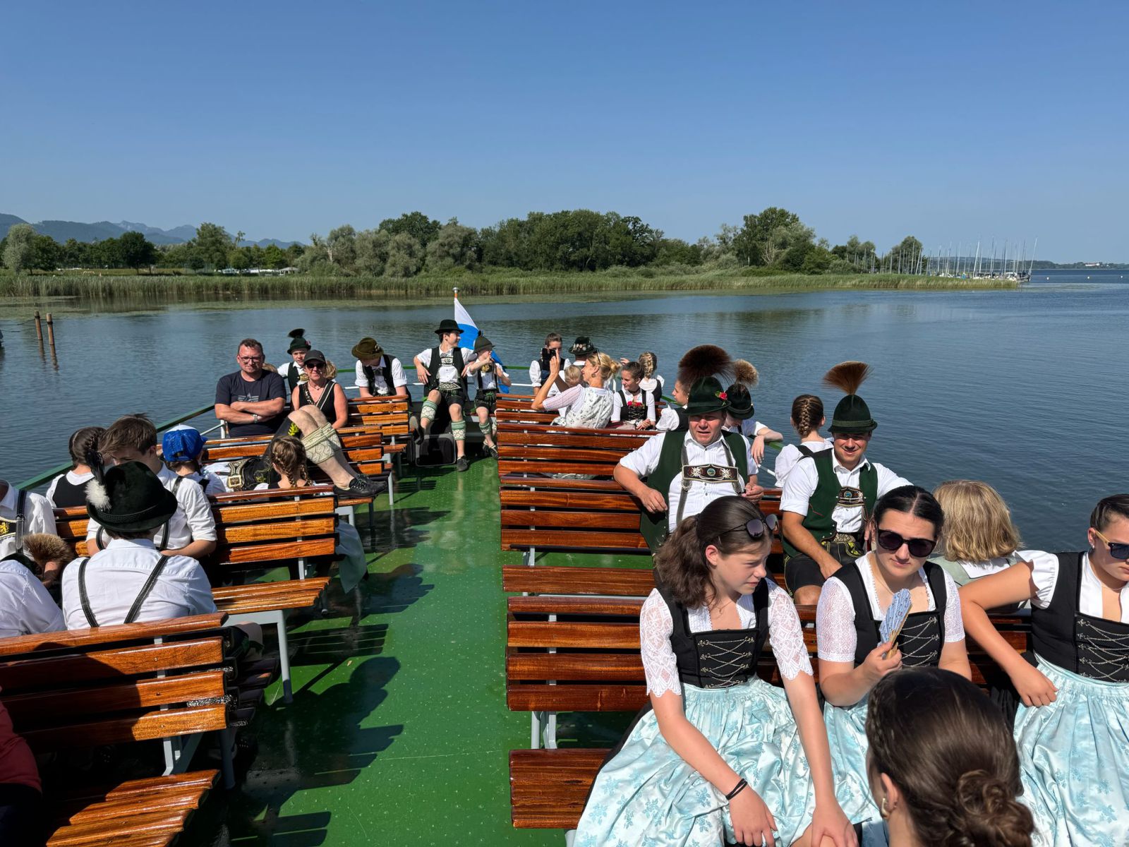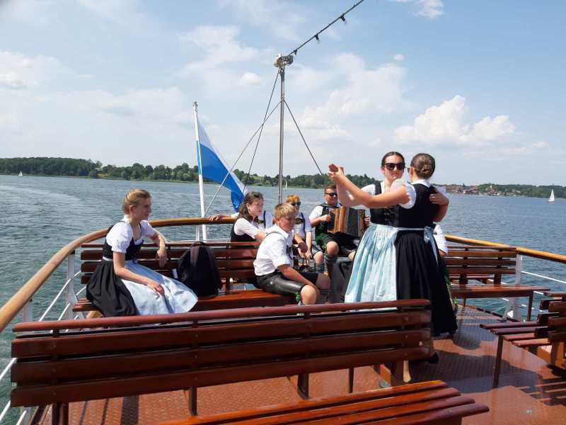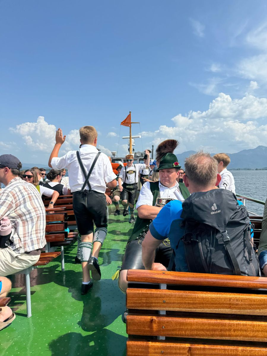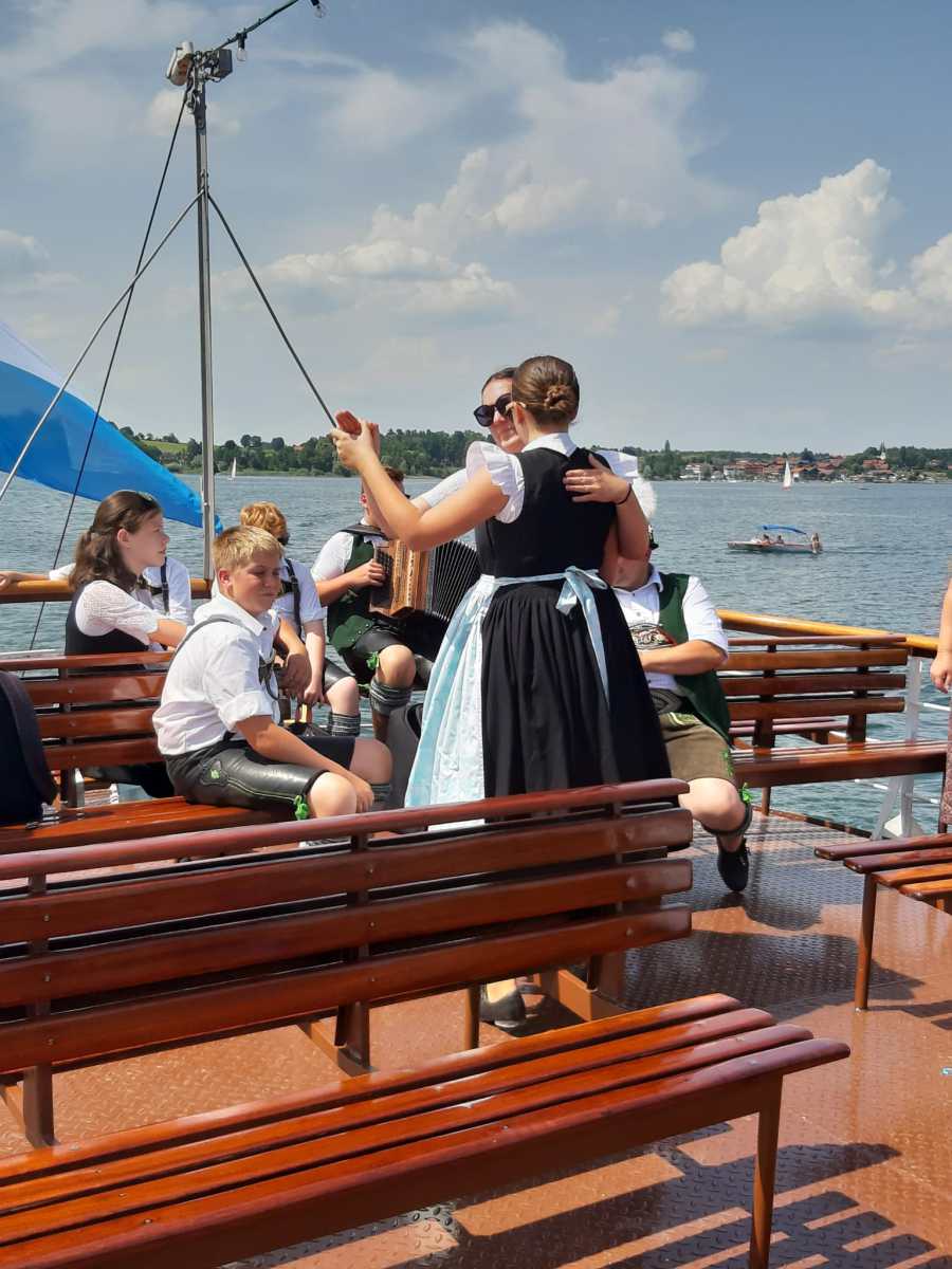 Bei der Heimfahrt in die Feldwies wurde auf dem Deck unseres Dampfers nochmal die Instrumente rausgerissen und ordentlich musiziert, getanzt und geplattelt.