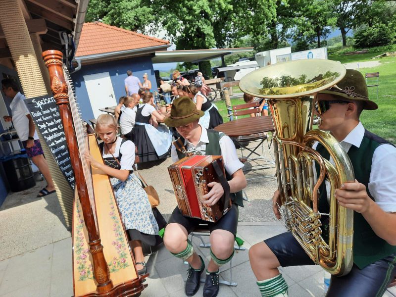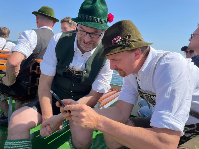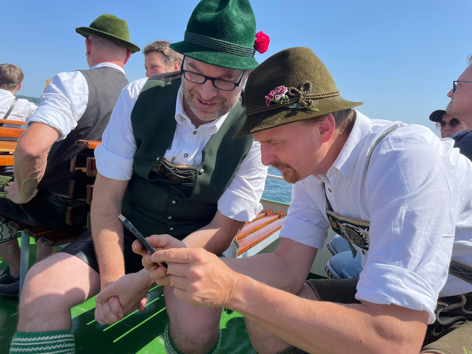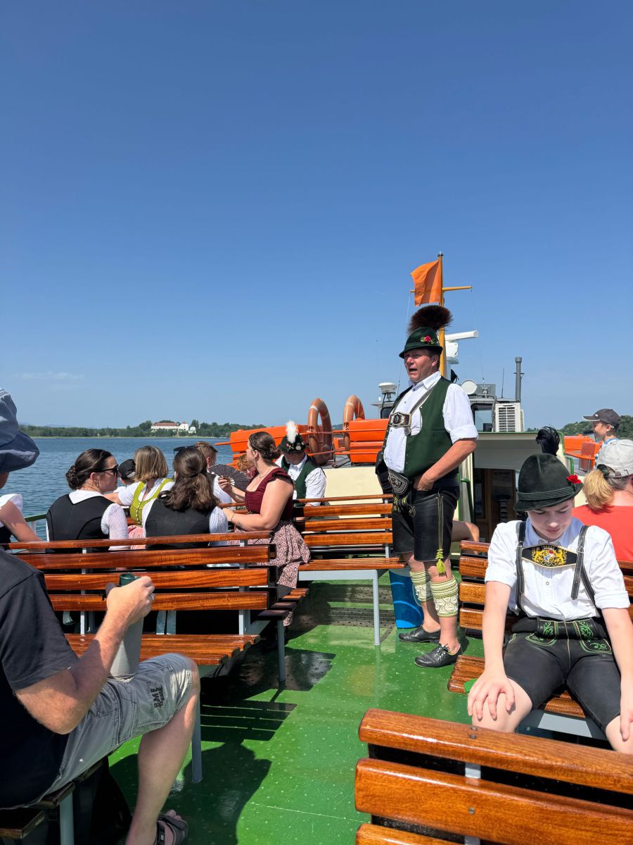 Bei der Heimfahrt in die Feldwies wurde auf dem Deck unseres Dampfers nochmal die Instrumente rausgerissen und ordentlich musiziert, getanzt und geplattelt.