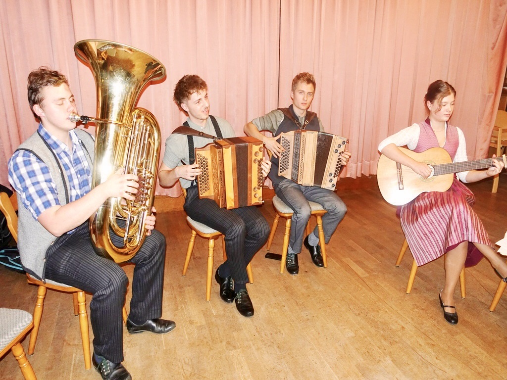 Evi und Andreas Hell waren tief berührt angesichts der ganzen Aktion und waren überwältigt, als Martina Gaukler die bislang eingegangenen Spenden erwähnte. Dies waren von Trachtenvereinen 11.860 Euro (Amerang, Marquartstein, Frasdorf, Atzing, Wildenwart, Hittenkirchen, Hohenaschau und Grabenstätt), dazu brachte an diesem Abend noch der Trachtenverein Rottau von seiner Klöpfelaktion sowie vom Marmeladenverkauf im Dorfladen einen Betrag von 3.790 Euro mit, desweiteren gab es aufgrund des Trachtler-Aufrufes noch viele Einzelspenden. „Das sind bis dato 24.339,60 Euro, das Eure notwendigen Baumaßnahmen und das Leben leichter machen sollen“. „Bin froh, ein Trachtler zu sein, habe die Jugendleitung in unserem Verein immer gerne gemacht“, mit diesen Worten dankte Andreas Hell seinem Staudacher Verein, der Bürgermeisterin und den Vertretern der Trachtenvereine, die bislang geholfen haben. Ein weiterer Dank galt all jenen Leuten, die sich beim Organisieren der Spenden und bei den Klöpfelgehen-Aktionen mit eingebracht haben sowie den vier jungen Musikanten aus den Reihen der Staudacher Aktiven, die als „Haudi-Zuawa-Musi“ dem besonderen Abend auch noch ein passendes musikalisches Gepräge gaben natürlich ohne Gage zu verlangen.
